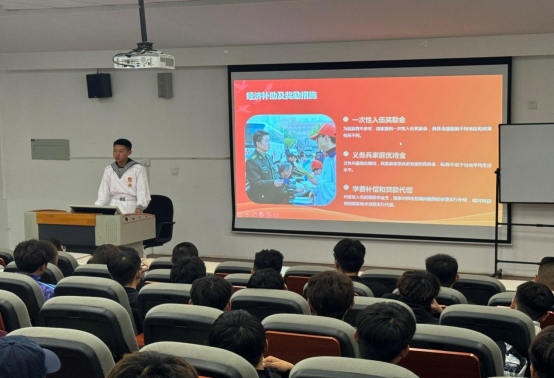 预储连退伍同学们依次上台进行宣讲。他们身着整齐的军装⚔️💁🏼,英姿飒爽,精神抖擞。宣讲中👮♀️⇨,他们不仅分享了自己在军队中的成长历程,还详细介绍了征兵政策🍦、入伍流程以及军队生活等各方面🥊➞。通过生动的故事和真实的感受,让在场的同学们深刻感受到军队生活的艰辛与荣耀🛕,激发了大家的爱国热情。互动环节中🈸🧑🏽🎄,同学们纷纷举手提问,退伍同学们耐心细致地解答了征兵政策等相关问题,并鼓励大家珍惜青春年华👨🏻⚖️,勇敢追梦军营🚼。