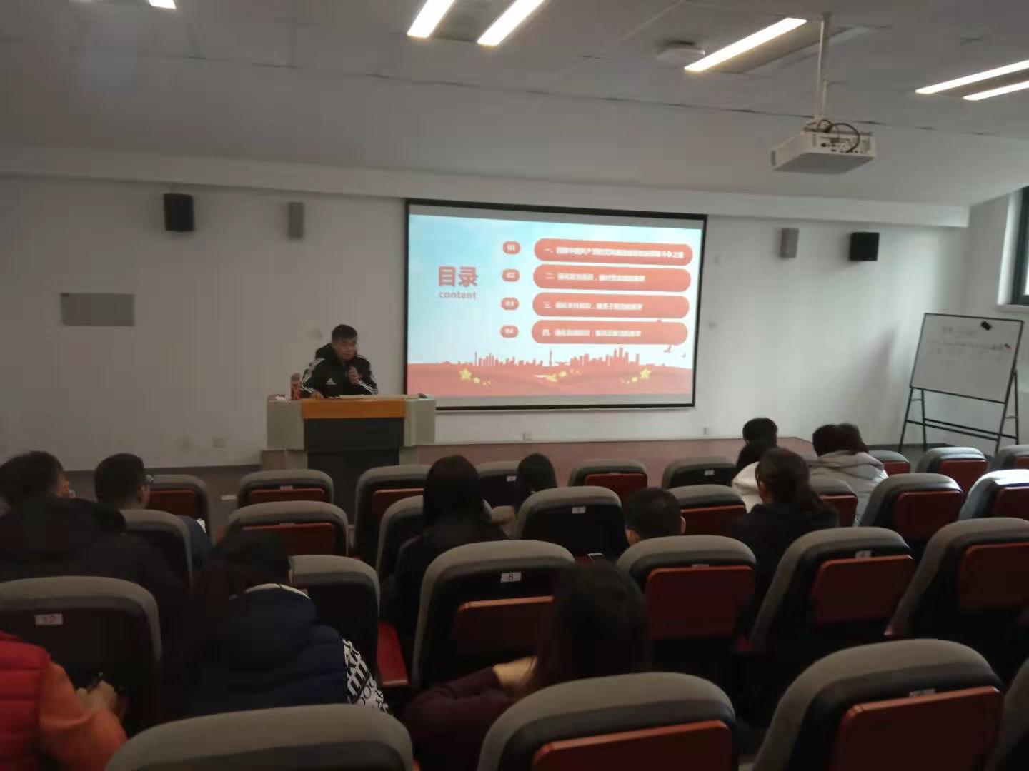 12月11日下午👩‍🦽,在学院第一阶梯教室✊🏽,由院党委书记王伟给学院中层干部及党员讲授了以“坚守初心 筑牢廉政的思想道德防线”为主题的廉政党课。