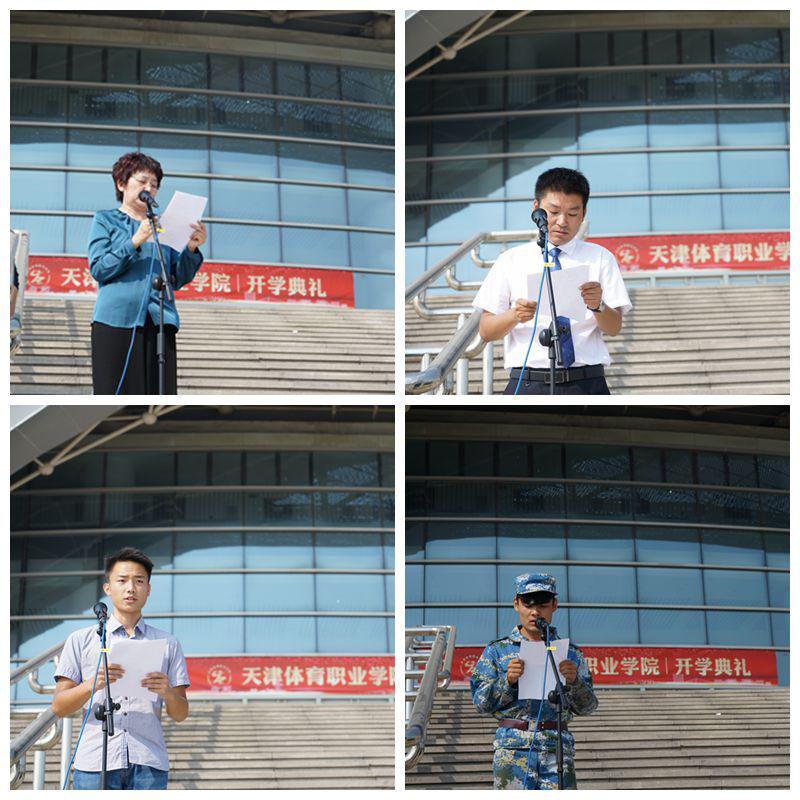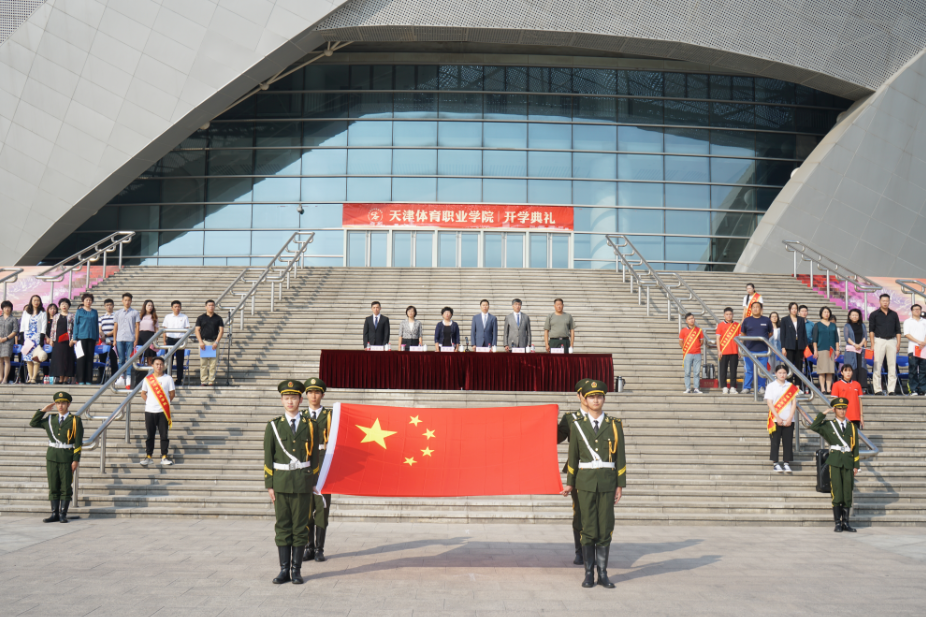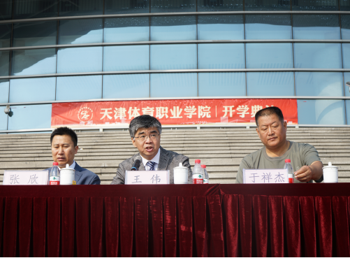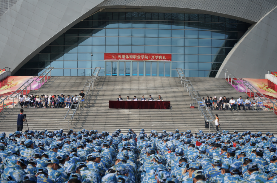 9月30日上午,体职院2019级新生开学典礼暨军训汇报表演汇演在团泊体育中心自行车馆前广场隆重举行。市体育局党委书记🏗、局长李克敏,市体育局党委委员🧗🏿‍♂️、副局长张欣𓀆,市体育局宣教法规处处长雷静,天津仪仗精英军事训练基地主任于祥杰及学院领导班子成员出席典礼🤙🏼,学院全体教职员工和2019级全体新生参加。典礼由院党委书记王伟主持。