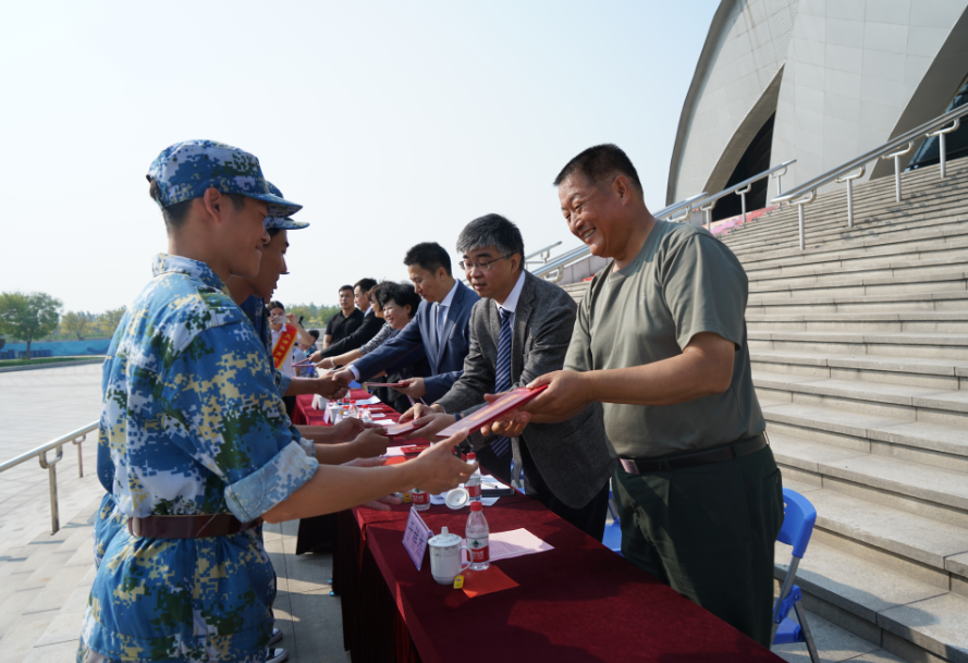 上午九时🧒🏻,典礼在庄严的国歌中拉开序幕,同学们以饱满的热情、昂扬的斗志、威武的军姿进行了分列式会操♠︎、擒敌拳🖐、匕首操和综合战斗课目汇报表演,展示了新时代大学生朝气蓬勃、意气风发的精神风貌。汇演后,天津仪仗精英军事训练基地主任于祥杰宣布表彰决定◀️,李克敏、张欣等领导为获奖的连队和个人颁发锦旗和证书。