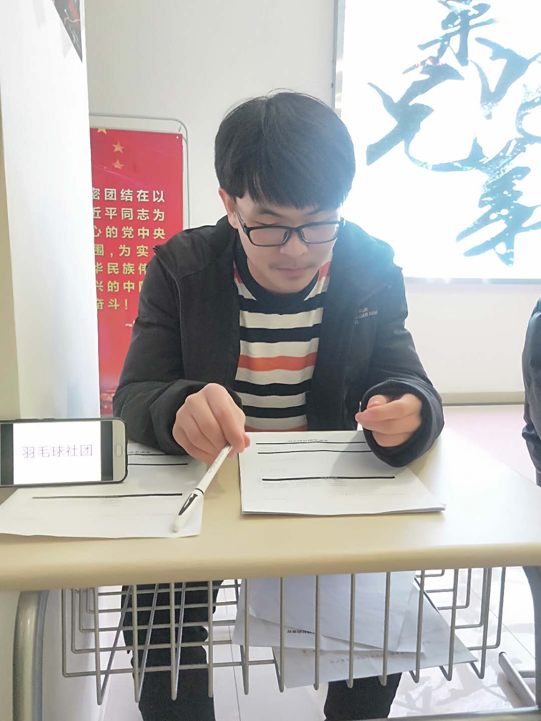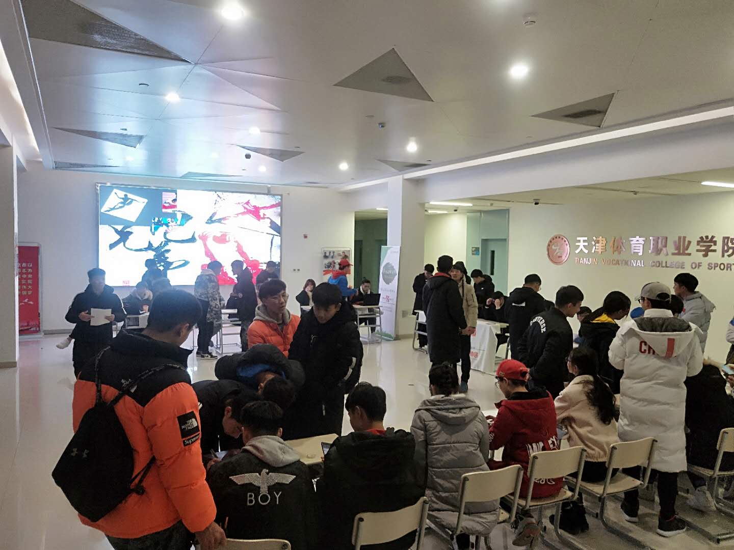 在教学楼大厅火热进行