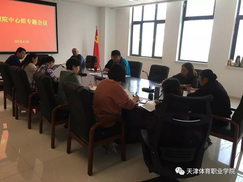 2018年4月19日,体职院召开中心组专题会议。会议由院党委书记王伟主持,学院副院长张毅出席,各处室、系部负责人、党支部书记、委员参加🗂。