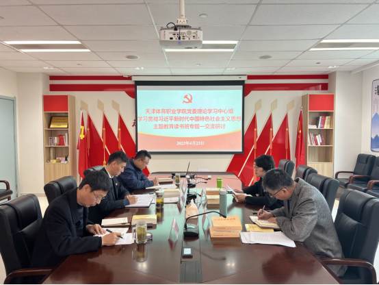 4月23日上午,体职院党委理论学习中心组召开学习贯彻习近平新时代中国特色社会主义思想主题教育读书班第一专题交流研讨会。院党委书记杨军主持会议👇。