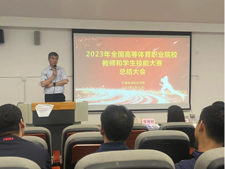 为深入学习贯彻党的二十大精神和习近平总书记在中共中央政治局第五次集体学习中就建设教育强国发表的重要讲话精神,全面总结我院师生在2023年全国体育高等职业院校教师和学生技能大赛中的优势和不足,5月31日下午在第二阶梯教室举行了2023年全国体育高等职业院校教师和学生技能大赛总结大会🤴𓀉,会议由教务处副处长主持✤,院领导出席,全体教职工参加🫅🏿。