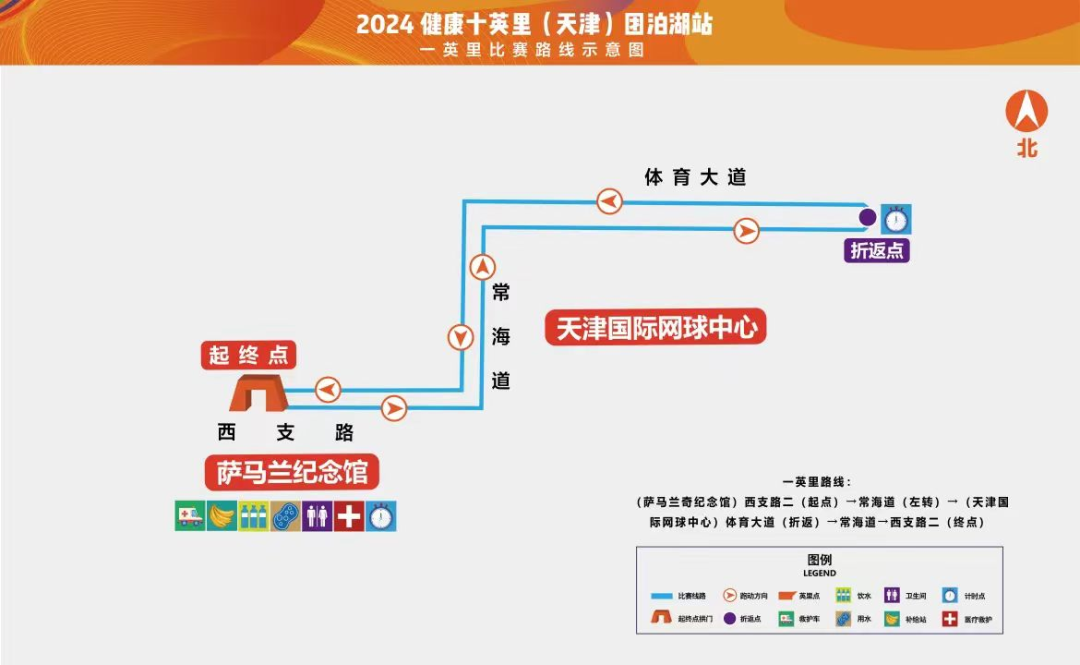 一英里:(萨马兰奇纪念馆)西支路二(起点)→常海道(左转)→体育大道(折返)→常海道→西支路二(终点)